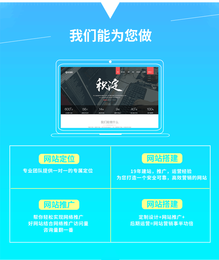 : 专业团队提供一对一专属定位,多年建站、推广、运营经验,为您打造一个安全可靠、高效营销的网站,帮您轻松实现网络推广,好网站结合网络推广访问量,咨询量翻一番,定制设计+网络推广+后期运营=网站营销事半功倍 .. ...